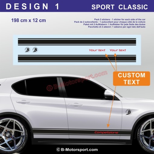 ALFA ROMEO STELVIO – Sportliches Seitenstreifen-Aufkleber-Set – 5 Designs für Seitenschweller