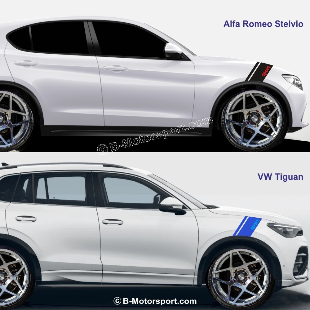 Die Streifen sind dafür vorgesehen, am rechten vorderen Kotflügel des Fahrzeugs angebracht zu werden.