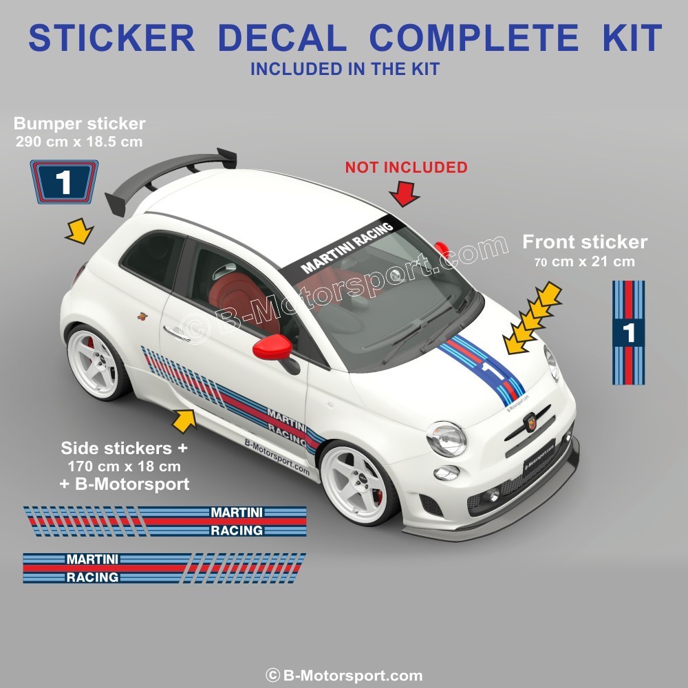 MARTINI NUMBER 1 - Kit adesivi completo compatibile con tutti i modelli 500 ABARTH 595 695
